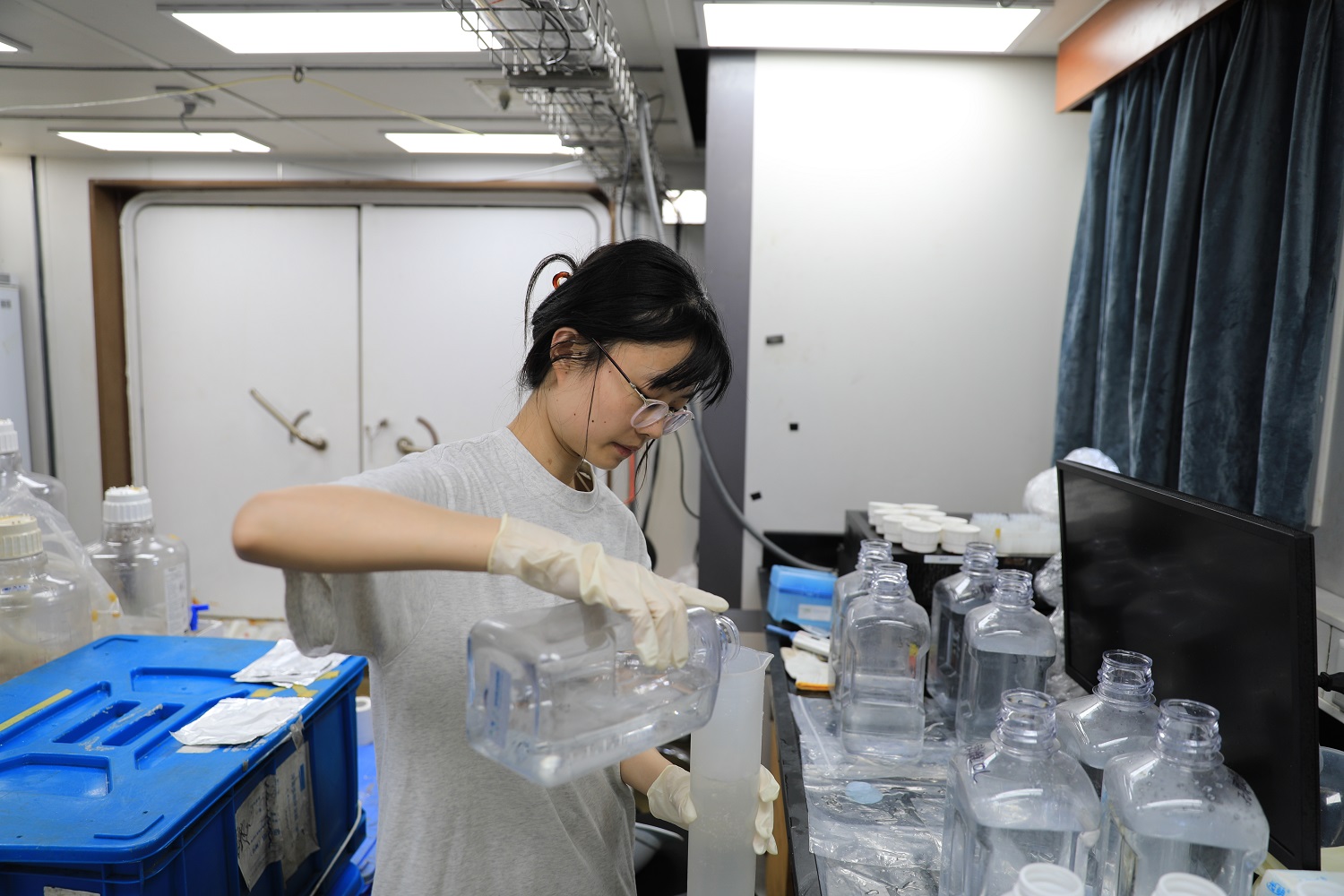 CTD seawater sampling and Lab analyses and tests (Photo: Zhifeng Yang)