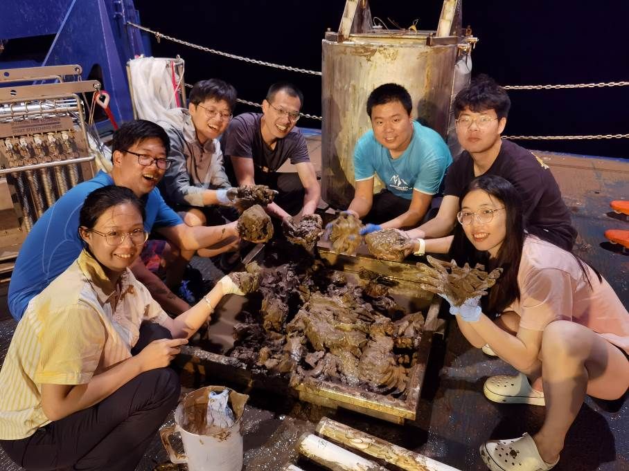 Cruise participants collected sediment samples. Photo: Yihua Cai