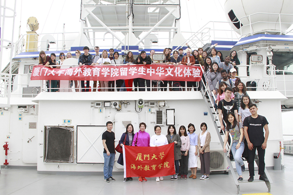 这是厦大海外教育学院为留学生们精心设计的“中华文化体验课”中的一节实地考察课。在海洋与地球学院的大力支持和精心安排下,主讲教师陈端端把讲授主题从凝聚中华民族“根”与“魂”的优秀传统文化拓展到熔铸时代精神的社会主义先进文化,将课堂设在了厦门大学的“海上校区”——“嘉庚”号科考船上。