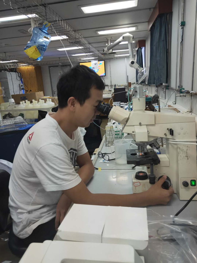 柳欣副教授在主实验室进行浮游生物显微镜鉴定