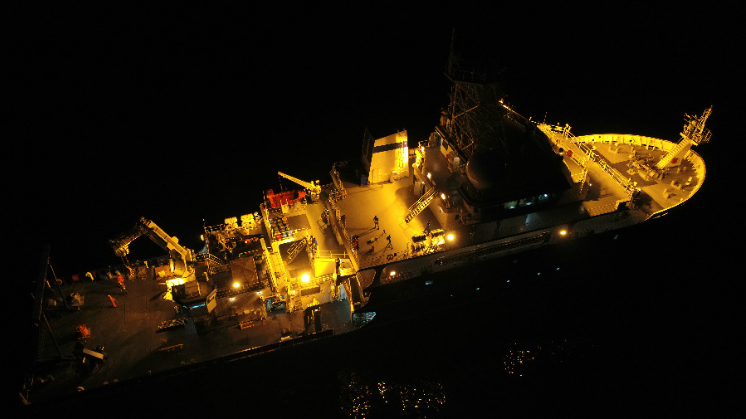 夜晚中的“嘉庚号”(图源:厦门大学科考船运行管理中心)
