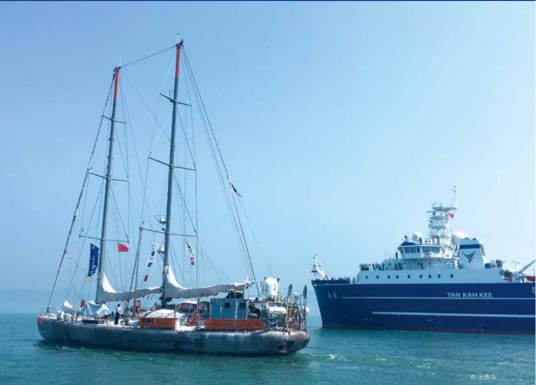 “嘉庚”号(右)与法国TARA号科考船(左)。