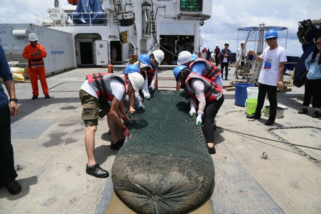 2018年厦门大学“海丝学堂”本科生实习航次现场,首批学员正在吕宋海峡进行底栖拖网作业。