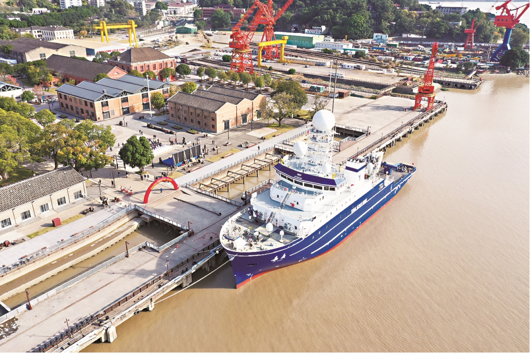 厦门大学“嘉庚”号科考船船长汤少华,向福建船政文化管理委员会赠送了“嘉庚”号的船模。据悉,此次庆祝活动,“嘉庚”号科考船将连续两天停靠在船政码头,并于23日至24日期间开展研学活动。福建船政文化管理委员会有关负责人表示:“‘嘉庚’号的到访不仅是对船政文化的一种致敬,也是对我国海洋科技实力的展示。”