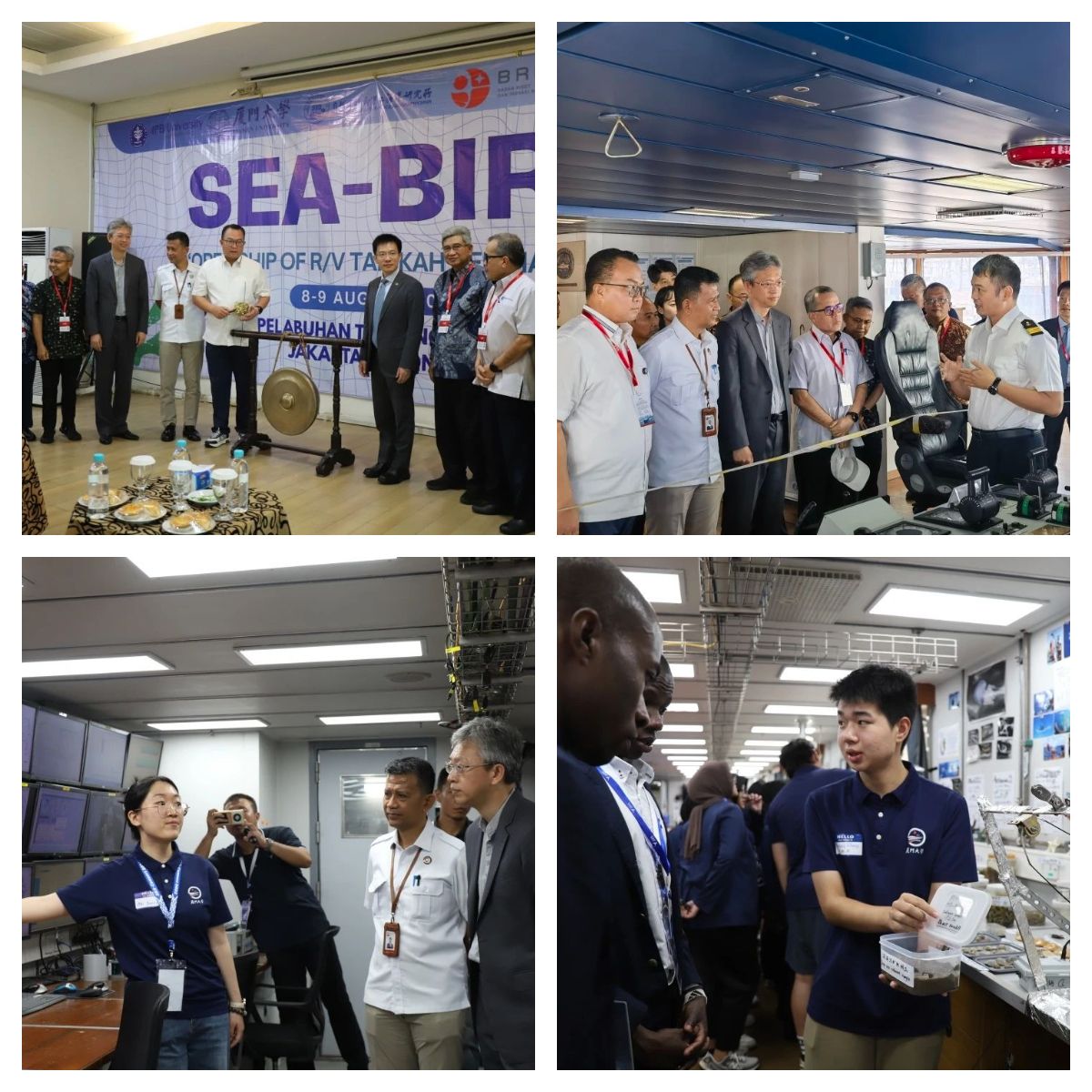 8月8日上午,本次公众开放日活动开幕式在雅加达丹戎普里奥港邮轮码头隆重举行。中国驻印尼大使王鲁彤,茂物农业大学校长阿里夫·萨特里亚,印尼国家研究与创新署副主席阿马鲁拉·奥克塔维安,厦门大学副校长史大林等嘉宾出席开幕式并致辞。开幕式结束后,与会嘉宾一同登上“嘉庚”号参观,深入了解“嘉庚”号的建造历史、内部构造、运行情况和其对厦门大学海洋学科及中国海洋科考发挥的重要支撑作用。
