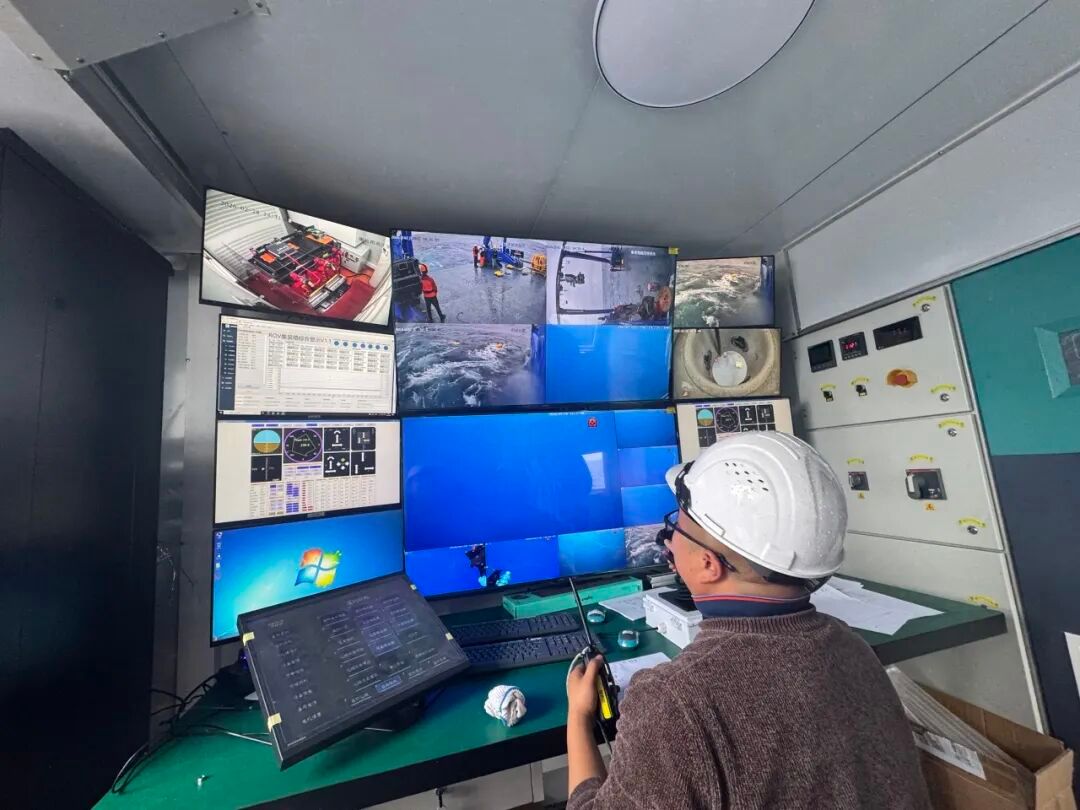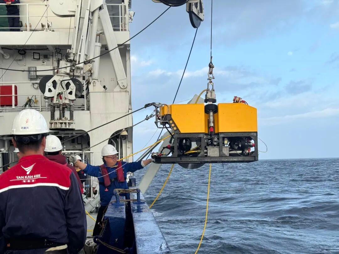 本次年度首航,不仅围绕本年度科考任务需求,完成了船载地球物理、水文生化等船载探测设备的全流程校准与性能测试;还完成了深海探测甲板安全保障系统(以下简称“深海安全保障系统”)和小型水下无人缆控机器人(以下简称“小型ROV”)两套新装备的海试验收,标志着“嘉庚”号的科考装备体系再度升级。