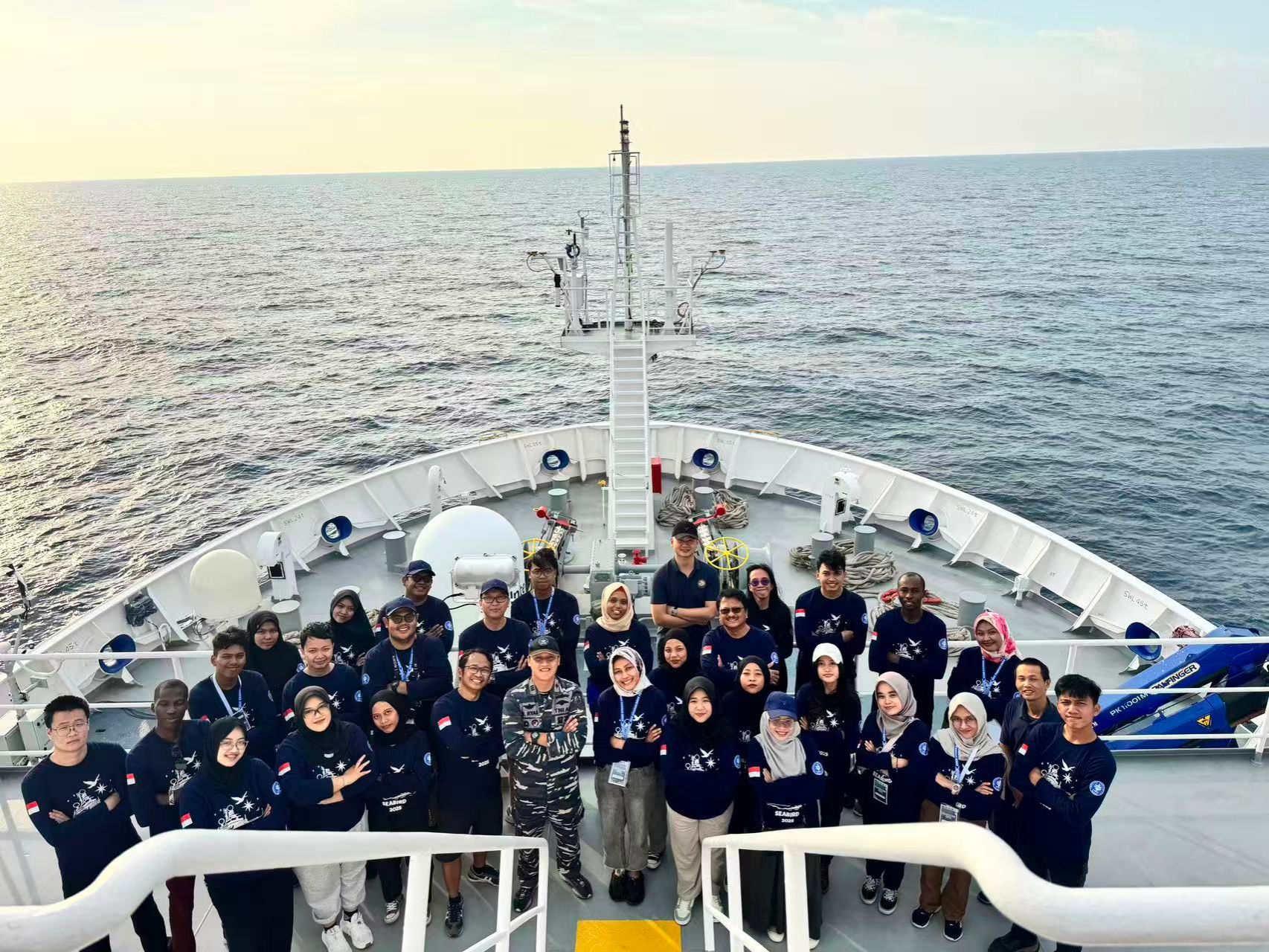 与往年不同,今年的“海丝学堂”航次分为四个航段,其中第三航段搭载的均为印尼当地高校与科研院所的师生;此外,今年的航次还在8月4日和8月28日两度跨越赤道,这一特殊经历对“嘉庚”号及该航段的参航人员都具有非凡意义。