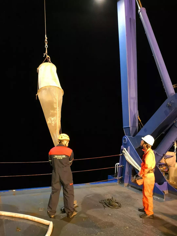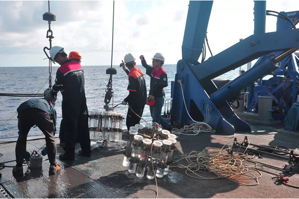 本航次运用了大量多学科、多平台的观测手段,充分展现了现代化海洋观测技术的优势。除船基CTD作业和采样外,航次还运用了走航多参数剖面仪(MVP),水下滑翔机(Glider),生地化自主式剖面浮标(Bio-Argo)等移动观测平台,布放了沉积物捕获器、UVP颗粒物成像系统垂直剖面仪、初级生产力剖面仪(FastOcean),并应用浮游生物分层拖网(MultiNet)、大体积泵海水过滤系统等现代工具进行了大量多学科采样观测。航次共完成65个站位的综合作业,累计MVP作业1014个剖面、现场作业331项,包括Argo布放作业4次、CTD作业139次、FAST Ocean作业4次、Glider布放和回收作业10余次、UVP颗粒物成像系统垂直剖面作业18次、大体积泵作业19次、单层生物拖网作业55次、多层生物拖网作业1次、湍流观测作业66次。