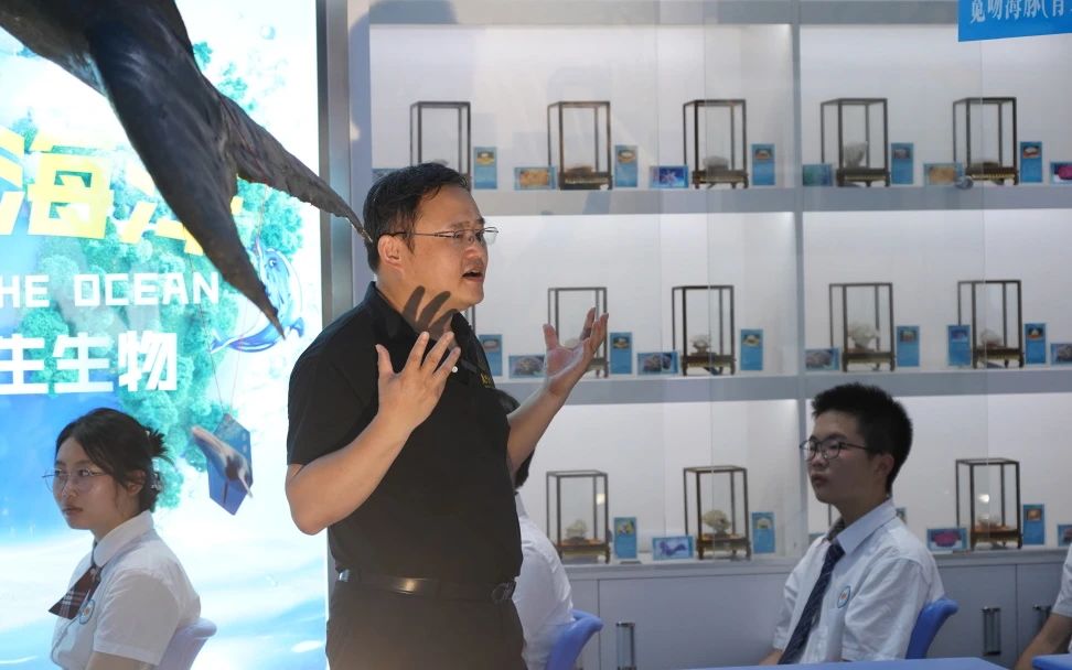 此外,在线下分会场里,厦大海地学院教授、科技中学副校长蔡明刚老师也用幽默而风趣的语言分享了自己的科考经历,厦大“勇闯深蓝,探秘海洋”暑期社会实践队的队员们亦为师弟师妹们带来了一些底栖生物标本的介绍和大学里海洋专业学习的内容分享。
