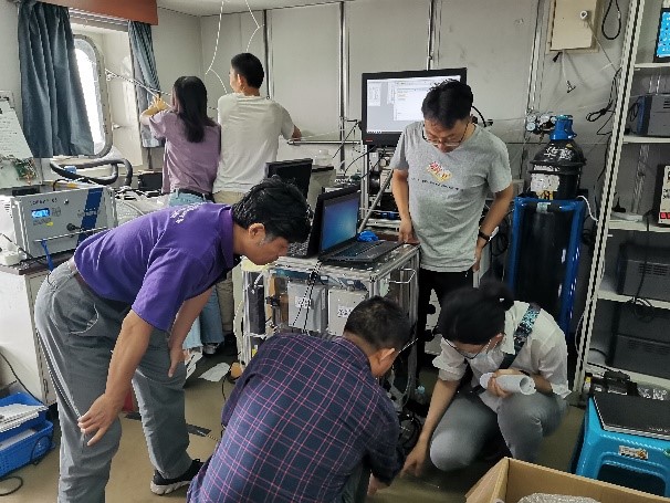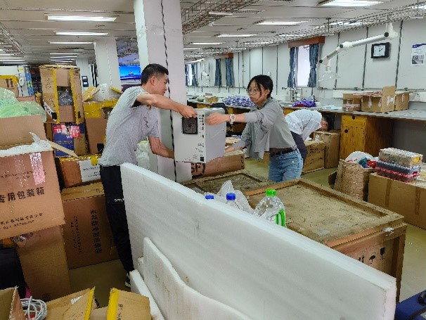 据了解,本航次将使用探空仪、风廓线雷达、微波辐射计、海气界面通量系统等设备观测大气垂直结构变化,使用气溶胶粒径分布仪、云凝结核计数器等先进设备观测大气化学过程,使用MVP、浮标、潜标、滑翔机等设备观测上层海洋和深海变化,其中有些设备是第一次在“嘉庚”号科考船上使用。为做好本航次备航及设备安装、调试工作,“嘉庚”号探测部的工程师们和各单位的科考队员们一同在“五一”假期期间坚守岗位,诠释了海洋人的最美风采。