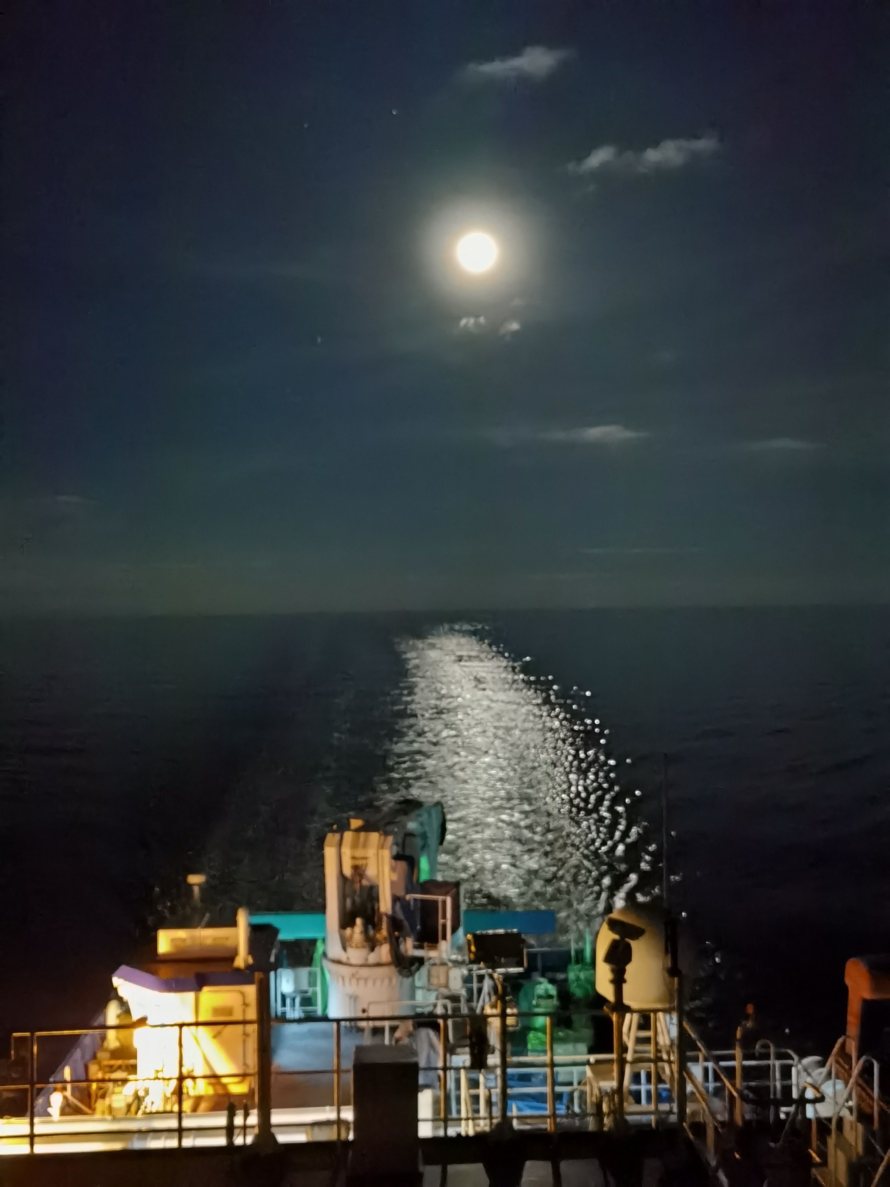 而“嘉庚”号也在不久前刚结束为期约50天的2021年度国家自然科学基金共享航次(KK2102航次),风尘仆仆返航厦门。此刻,月洒清辉,“嘉庚”号依偎在港湾的柔波中,全船灯火通明,正为下个科考航次做着相关的准备工作。