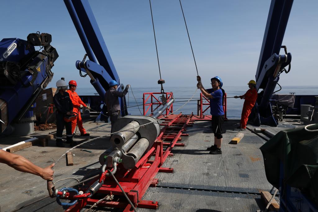 长岩芯重力活塞取样器作为海底沉积物柱状取样的设备之一,是一种新型的重力活塞取样器。通过取样器下放过程中重锤、样管和活塞等机构的互相配合,从而将海底沉积物吸入样管内。在第六次船载设备试验航次(KK2103)中,“嘉庚”号科考船的长岩芯重力活塞取样器...